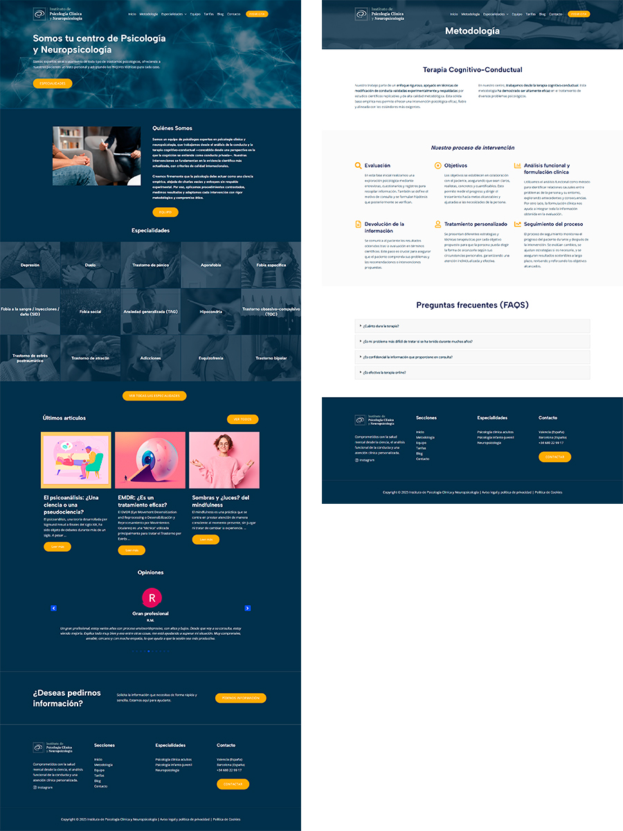 Desenvolupament de la pàgina web de l’Institut de Psicologia Clínica de València. Informació extensa de diferents patologies, test de diagnòstic, reserves en línia, etc.